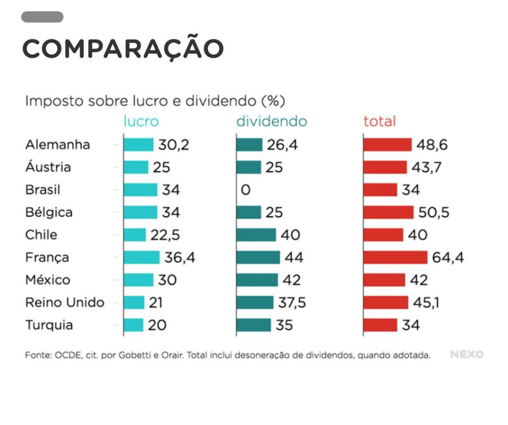 Só Brasil e Estônia não tributam lucros e dividendos distribuídos a acionistas. Essa isenção nem sempre existiu no pais, foi criada em 1995 pela lei 9.249 durante o governo FHC. O motivo era tornar o Brasil mais atrativo a investimentos privados.